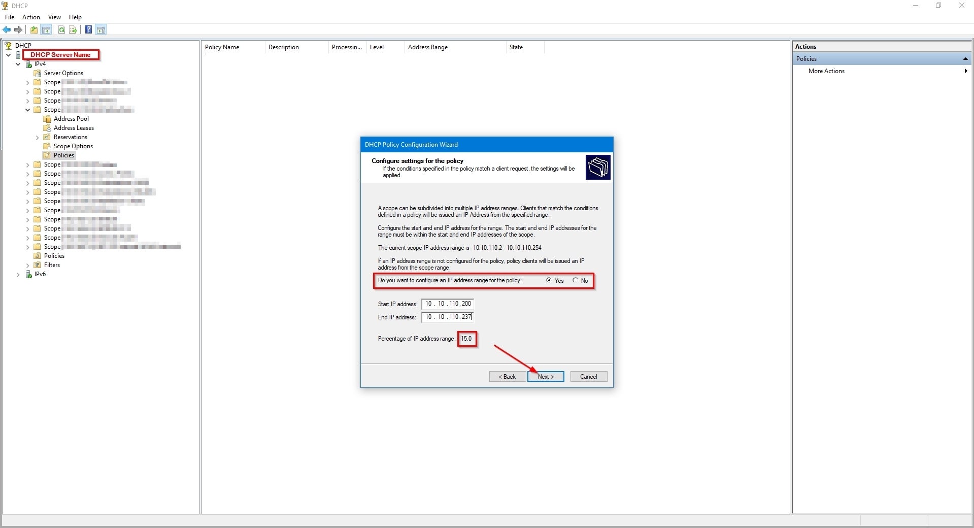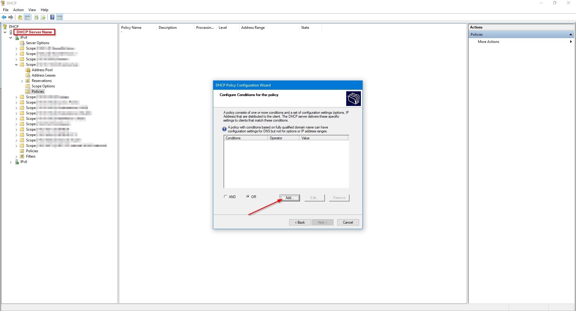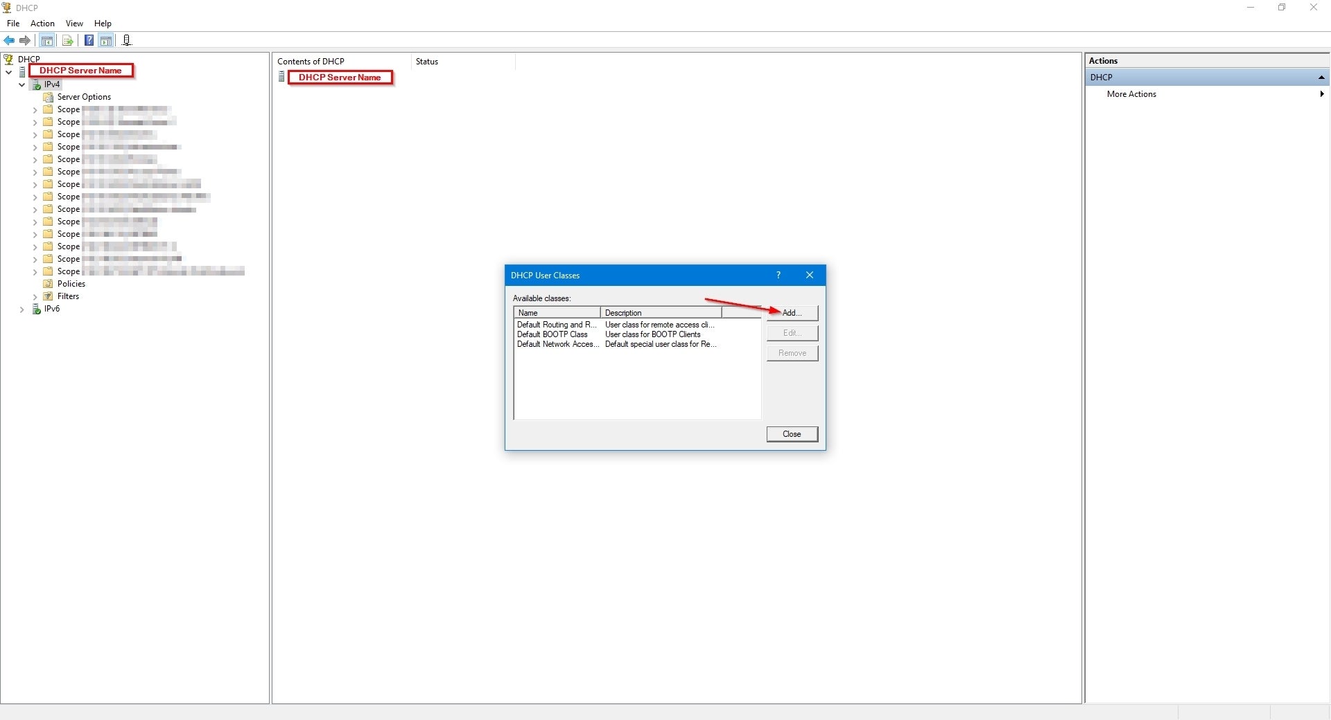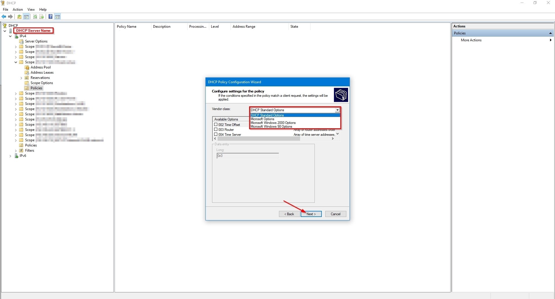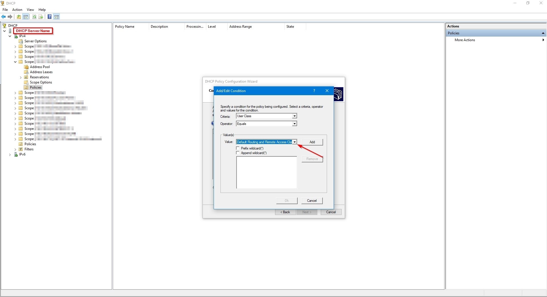 'Scopes' and 'classes' of IP addresses can help to logically organize address ranges by users and devices within Windows DHCP Server. Credit: Collin Anderson Whether in an existing network or a new one, there is an aspect of design that cannot be skipped: deciding if handing out IP addresses will be dynamic (automatic) or manual (one-by-one) or—the most common—a combination of the two. By choosing to distribute them dynamically you are choosing to use a dynamic host configuration protocol (DHCP) service somewhere on your network, and there can be some tricks to that regardless of what server you use. For this discussion, I will describe how to use user classes on a Windows DCHP Server to specify a range of IP addresses and to assign range-specific DHCP options. For background, DHCP is a protocol between server and client with the server automatically providing IP addresses to clients as they join a network rather than the addresses being manually assigned per device. The DHCP role in a network can be performed by different types of hardware (security appliances, L3 switches, DHCP servers), but it doesn’t have to be just one of them; it can be whatever works best for what you are trying to do. A common DHCP setup I use is running the service on a security appliance to host ranges of IP addresses grouped as a subnet for dynamic distribution—scopes—that only need access to the internet, such as guest or IoT networks. Then I run a separate DHCP server to handle devices and scopes within the domain that accesses internal resources. There are many reasons to choose DHCP over static assignment, the biggest being ease of use. In most enterprises there will be at least one DHCP server on the network serving IP addresses from at least one scope to be given out to devices as they connect to the network. Scopes are configurable and can range from two IP addresses to thousands. Microsoft’s DHCP server handles as many scopes as you need and has a pretty simple GUI for setup and management. It also supports subsets of scopes, called classes, to help organize addresses by users and devices in a logical way. User classes and vendor classes allow you to assign DHCP options to groups of clients by specifying policies that will apply to some users or devices but not all of them within the same scope. Classes within scopes can be useful if you want to separate a group of devices to one segment of a scope while still maintaining dynamic hosting. For example, I recently used user classes to assign addresses from a particular scope to SD-WAN users working remotely. Because the network between the DHCP server and the proxy server that set up VPN links to clients was virtual, I used user classes to distinguish the SD-WAN clients from native clients. DHCP user classes and vendor classes alike are identifiers that use a minimum of 1 octet within the IP-address request sent from the DHCP client to the DHCP server. Their purpose is to define policy criteria such as tags that denote class, specific vendor information, or to specify DHCP servers. By using user or vender classes with DHCP policies you can specify types of devices and organize what range they receive IP addresses from within a given scope. There are several ways to use DHCP policies but I will show how to use user classes on a Windows DCHP Server to specify a range and to assign range-specific DHCP options on that class. How to implement user classes To implement user classes you first need to connect to the DHCP server that is in your domain. As long as your DHCP server is a Windows server 2012 or newer, the following steps will apply. First open the DHCP Microsoft Management Console (MMC) snap-in and connect to the server. Once you have it open, right click on the IPv4 icon to access the drop-down menu and click on Define User Classes: Michael A. Flowers Sr. On the “DHCP User Classes” dialog box you will see the existing user classes by name and description. To add a new one simply click on “Add…”. Michael A. Flowers Sr. In the “New Class” dialog box you will need to add the display name, description, and ASCII name of the class. The display name and description are really only for your own organization, but having them describe what you are trying to use the class for may help make it easier to identify them later. The ASCII field is the important area that will act as the actual “tag” for the packets coming to the DHCP server. For this field do not use spaces between the words and be sure to be mindful of case, as it is case sensitive. I have had mixed success with special characters. Some, such as hyphens or underscores, work and others, like pound signs, don’t. I haven’t seen restrictions on use of characters in the Microsoft documentation, so keep that in mind. Be sure to take note of what you put there for later and click “OK” when you are done. The “Binary” field to the left of the ASCII field will auto fill as you fill in the ASCII name. Michael A. Flowers Sr. Once your new user class is added, click “Close” to exit this dialog box. Back at the main DHCP MMC snap-in, expand the scope you will be applying this user class to, right-click on the “Policies” folder, and select “New Policy…” from the drop-down menu. Michael A. Flowers Sr. In the “Policy Name” field enter a name that will make sense to you and your team when you look back on this later. Fill in the “Description” field with what you are aiming to use this policy for. Click “Next”. On the “DHCP Policy Configuration Wizard” click “Add” to add a condition for the policy. Michael A. Flowers Sr. In the “Add/Edit Condition” dialog box, use the drop-down menu to change the “Criteria:” field from Vendor Class to User Class. Michael A. Flowers Sr. Change the “Value:” field to the new user class you just created. Michael A. Flowers Sr. Click the “Add” button when all of your selections are correct. Michae